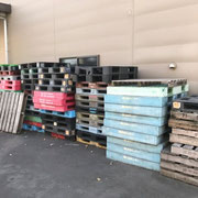 宇都宮市内の法人A社よりパレット80枚の撤去処分と会社まわりの草刈りのご依頼がありました。パレットは再利用してくれるところも探されたようですが見つからず4t8㎥アームロール車での回収処分となりました。草刈り後、念入りに除草剤の散布もさせていただきました。