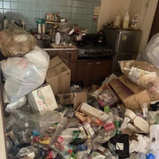 リビングがゴミ屋敷化しており、可燃不燃の仕分け作業と洗剤や飲み物などの液体を空けるに少し時間がかかりましたが、家電やサーバーなどの処分と水回りの簡易清掃も含め、何とか1日で完了させることが出来ました。大家さんにも満足してもらいました。