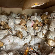 できる限り早く作業に入ってもらいたいとのご要望がり写真とのおり防護服を着ての作業となりました。体液のついたゴミで、しかも圧縮されているためトラック5台分の物量になりました。